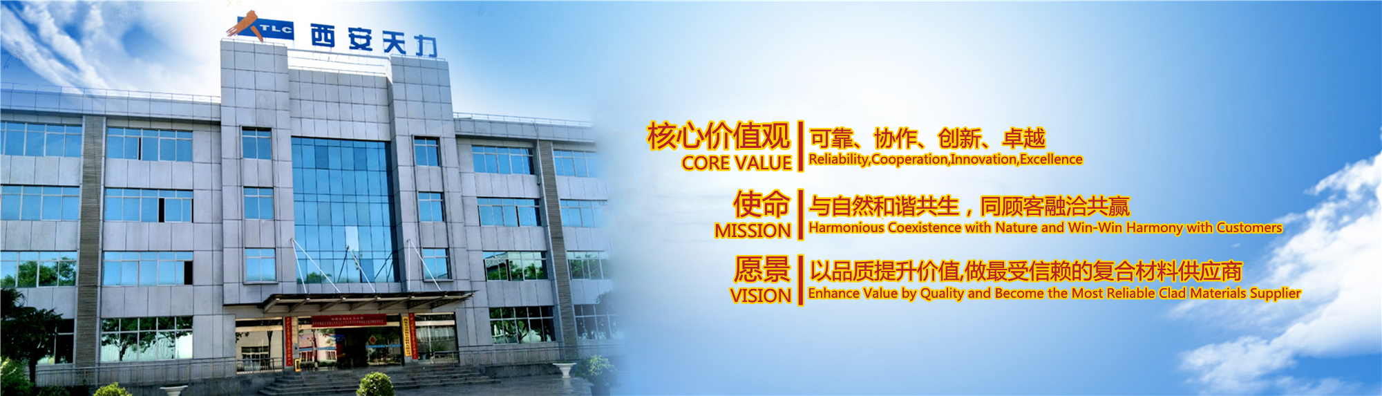 西安天力金屬復合材料股份有限公司是西北有色金屬研究院(集團)產(chǎn)業(yè)化上市公司“西部材料”控股的獨立法人公司,是專業(yè)從事層狀金屬復合材料研究及生產(chǎn)的高新技術企業(yè),成立于2003年12月25日,位于西安經(jīng)濟技術開發(fā)區(qū)涇渭工業(yè)園,注冊資本10895萬股,擁有生產(chǎn)廠房23000余平米,各類生產(chǎn)設備200余臺套及兩塊條件優(yōu)越的爆炸復合場地,形成年產(chǎn)25000噸層狀復合材料的生產(chǎn)加工能力……